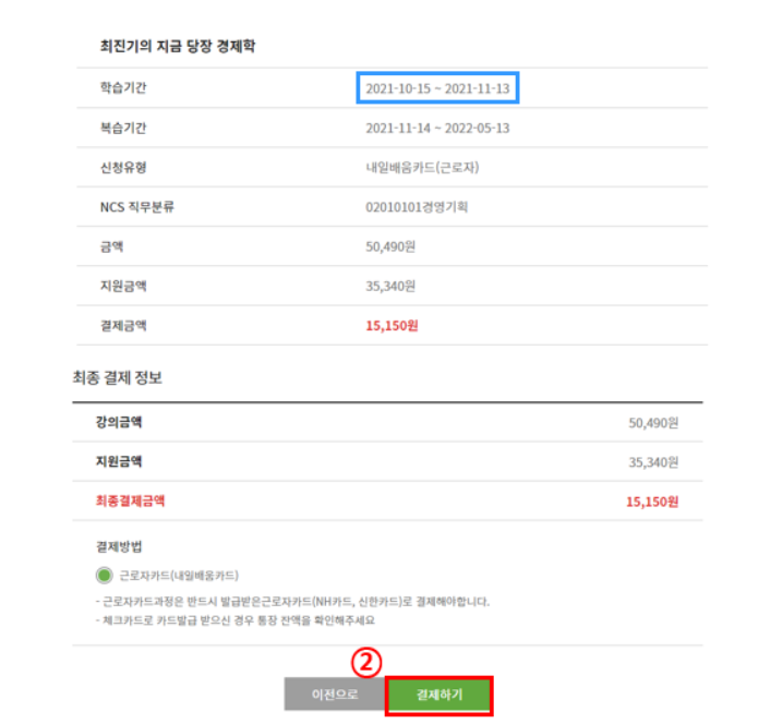※하단에 보이듯이, 반드시 발급받은 내일배움카드로 결제하셔야 적용됩니다※