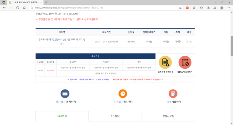 1. 윈스펙 사이트의 과정정보로 다시 돌아와서,