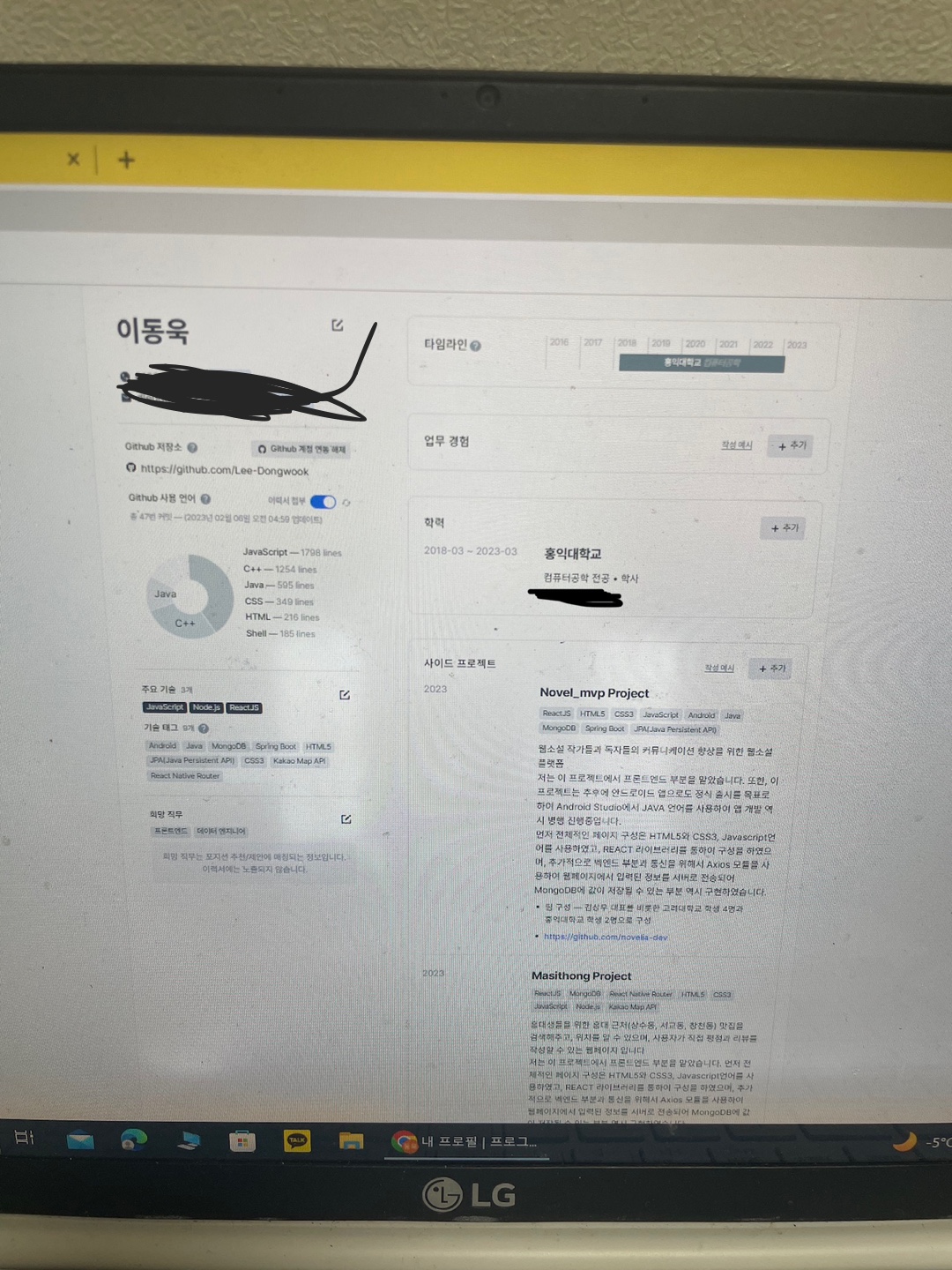 그리고 프로그래머스 사이트에서 이력서 비슷한 양식으로 나의 프로필도 작성했다.
