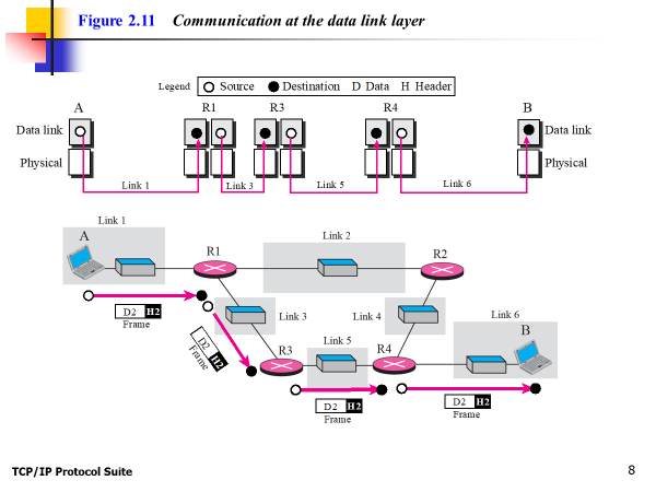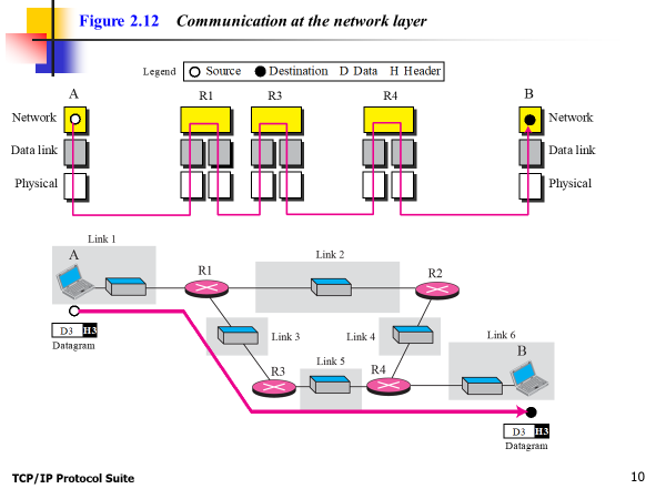 Physical address는 hop to hop으로부터 변경된다, 하지만 logical address, port address는 변경없이 그대로 유지된다.